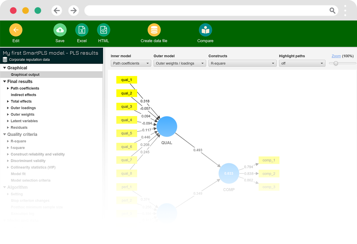 SmartPLS offers a user-friendly environment for conducting structural equation modelling with a focus on PLS-SEM. Its features make it accessible to researchers and provide valuable insights into the relationships among variables in complex models, making it a valuable tool for empirical research and hypothesis testing in various fields.